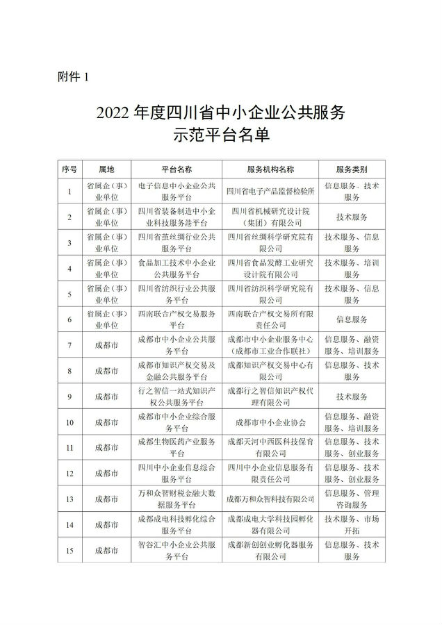 附件:1.2022年度四川省中小企业公共服务示范平台名单