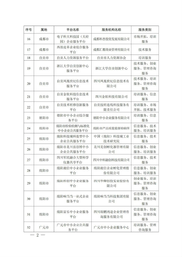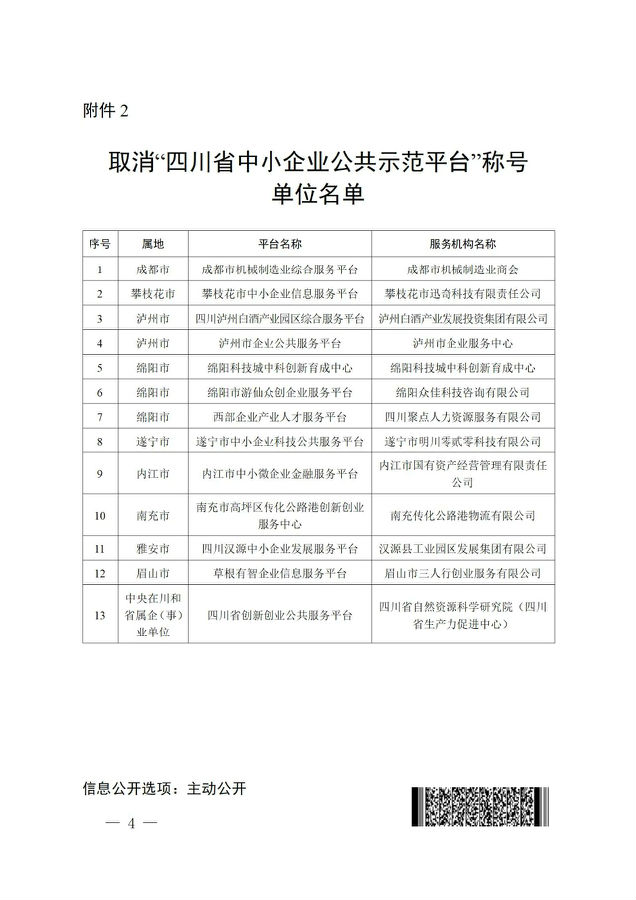 二、取消成都市机械制造业商会等13家单位(具体名单见附件2)“四川省中小企业公共服务示范平台”称号。