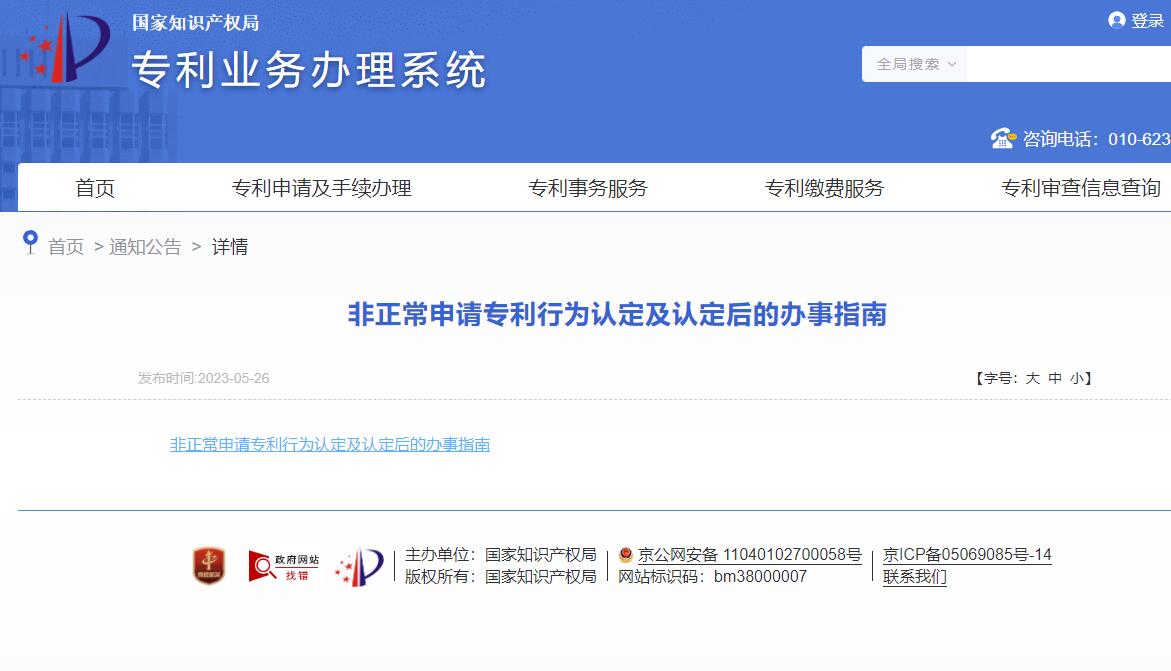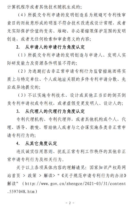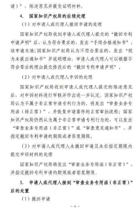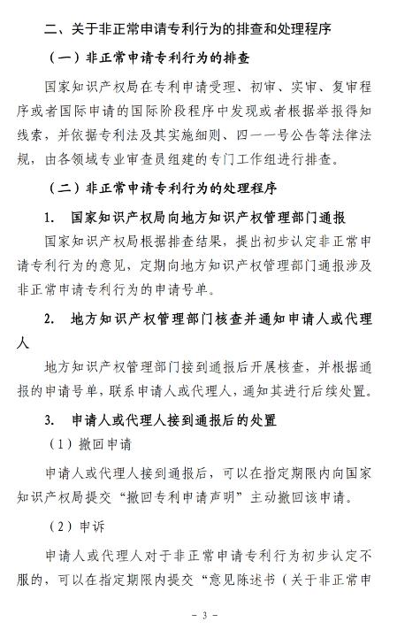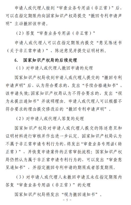 “近日,国家知识产权局发布了《非正常申请专利行为认定及认定后的办事指南》,《办事指南》从4个角度明确了非正常申请专利行为的认定标准,也对非正常申请专利行为的排查和处理程序做出了详细的公布。”