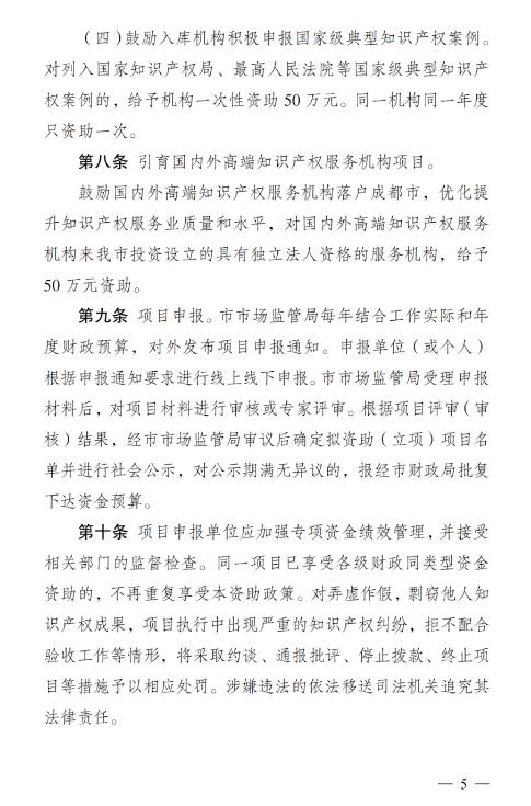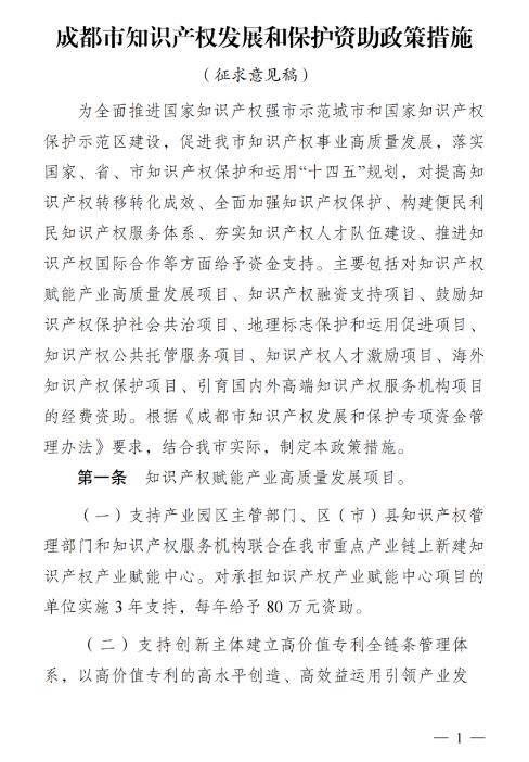 1.成都市知识产权发展和保护资助政策措施(征求意见稿)