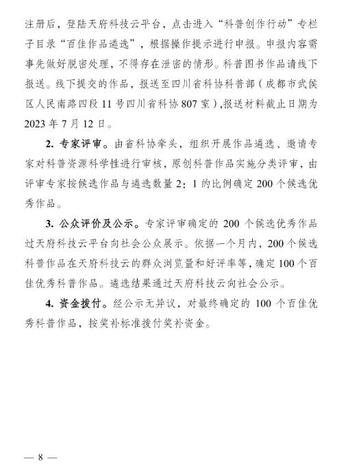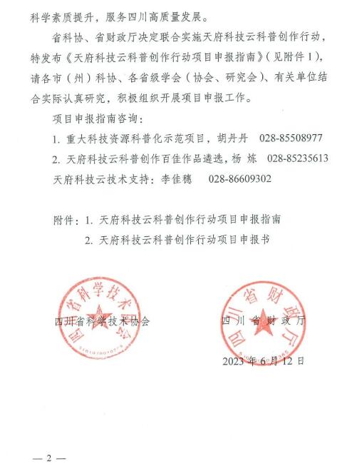 2.天府科技云科普创作百佳作品遴选,杨炼028-85235613