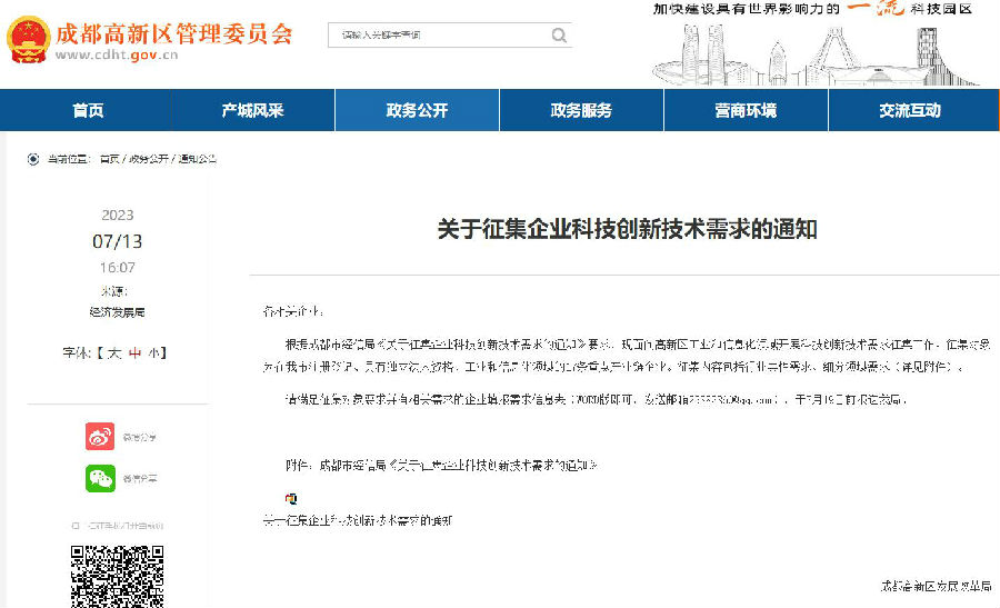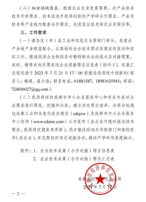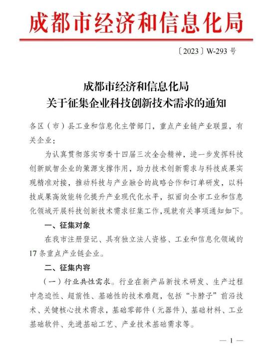 附件:成都市经信局《关于征集企业科技创新技术需求的通知》