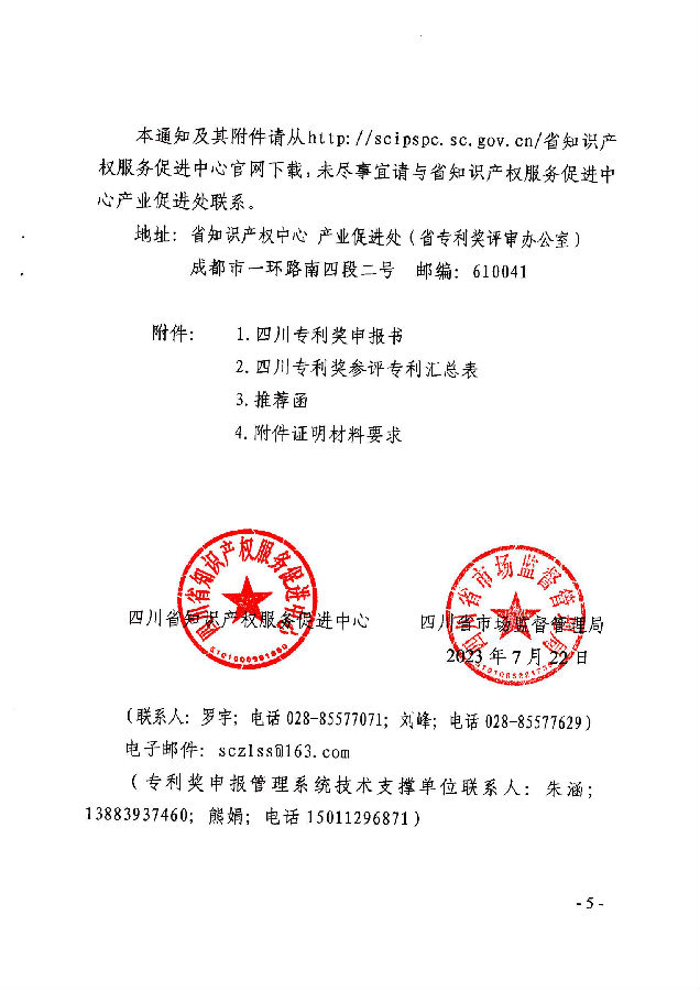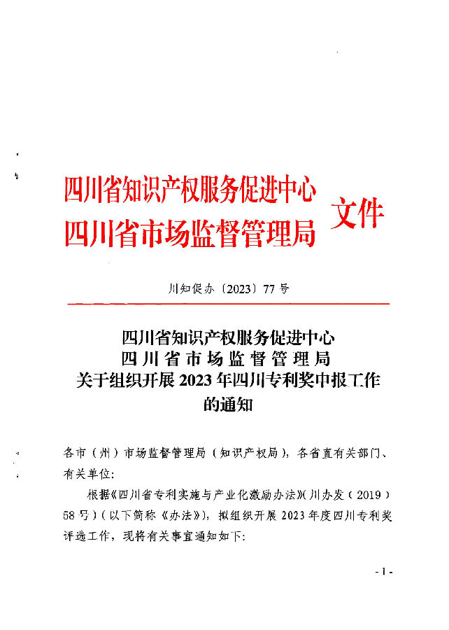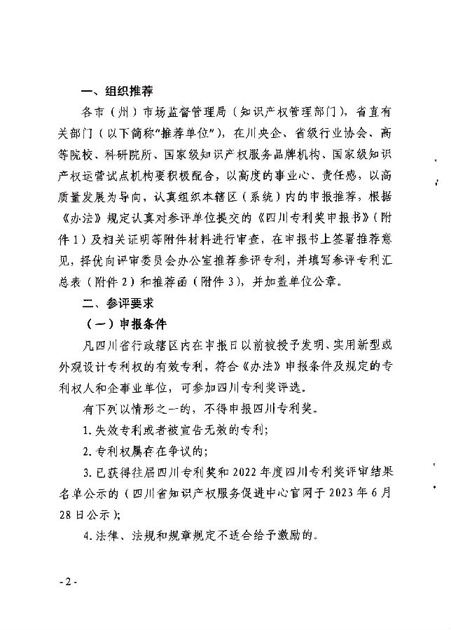 附件:四川省知识产权服务促进中心四川省市场监督管理局关于组织开展2023年四川专利奖申报工作的通知