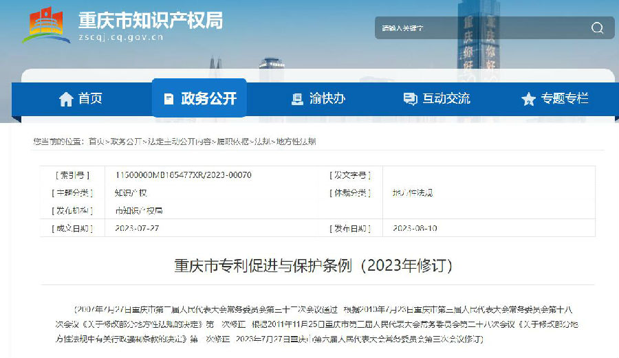 重庆市专利促进与保护条例(2023年修订)