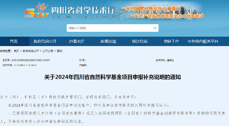 在2024年四川省自然科学基金项目申报过程中,针对各单位咨询较多的问题补充说明如下: