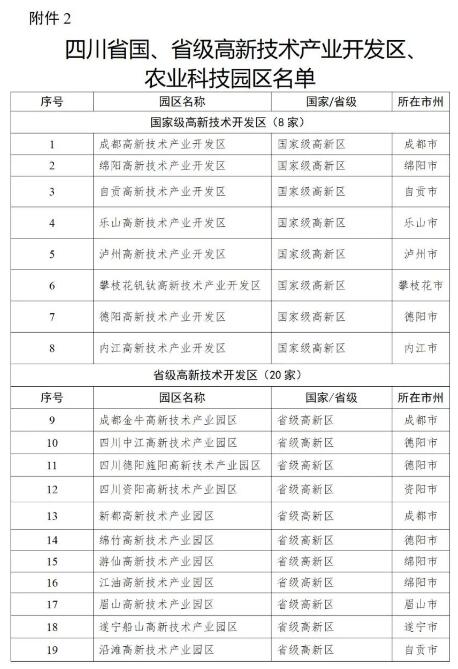 2.四川省国家、省级高新技术产业开发区、农业科技园区名单