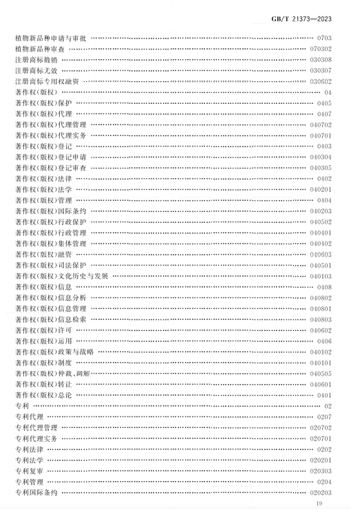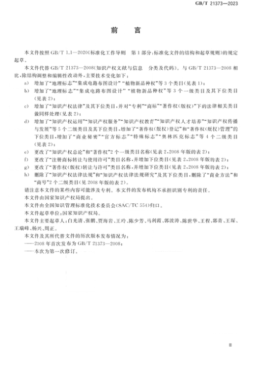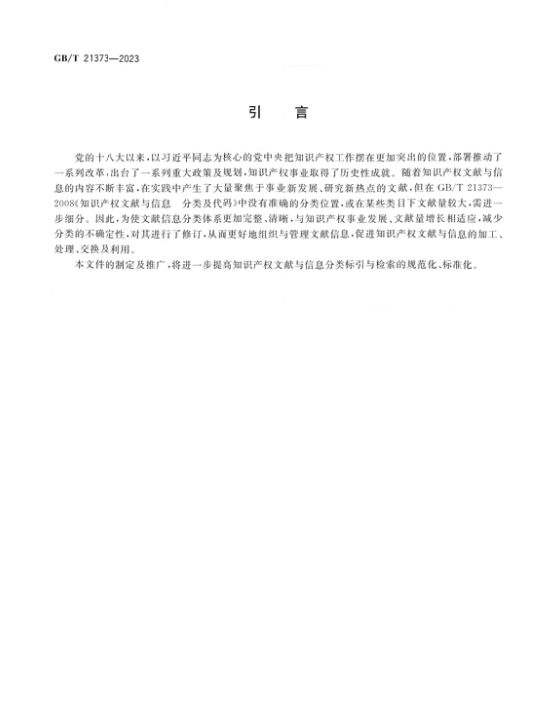 近日,国家标准化管理委员会发布《知识产权文献与信息 分类及代码》国家标准全文,该标准将于2023年10月1日实施,全文如下: