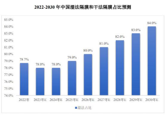 其中,2025、2026 和 2027 年,湿法工艺的国内市场占有率将达到 79%、80%、81%。