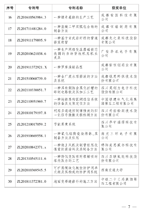 附件:2022年度四川专利奖获奖专利项目名单(66项)