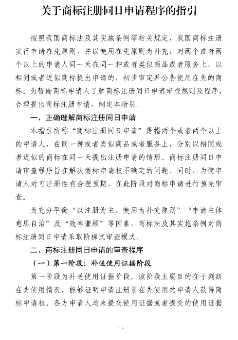 国知局 |《关于商标注册同日申请程序的指引》发布