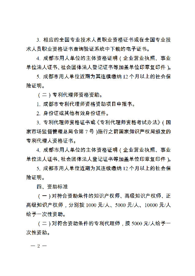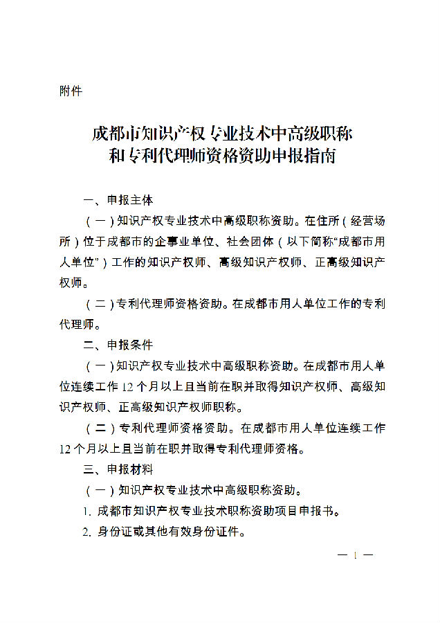 附件:成都市知识产权专业技术中高级职称和专利代理师资格资助申报指南