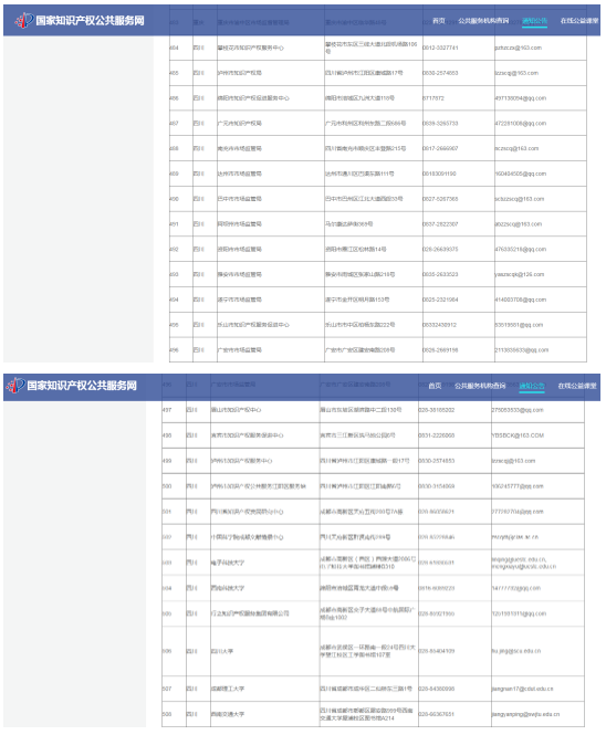 ↓↓↓四川省内有检索账号的知识产权公共服务机构名单及地址↓↓↓