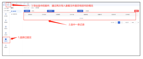 三是及时核查已提交案卷包的文件内容,如确认文件损坏无法打开,请重新编辑并提交文件。通过客户端提交的案卷包,可以如下图方式核查已提交案卷包的文件内容。