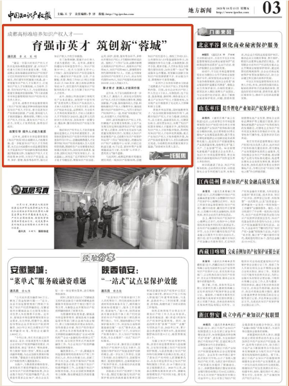 此外,围绕以科技创新引领现代化产业体系建设,该局将“中国专利奖”获奖发明人等知识产权高层次人才纳入《成都市人才分类目录》,将知识产权法务总监、运营顾问、专业技术人员等结构紧缺型人才纳入《成都市人才开发指引(2023)》,通过多元化的培训方式和内容,加快培养一批懂专业、懂法律、懂市场的知识产权复合型人才。