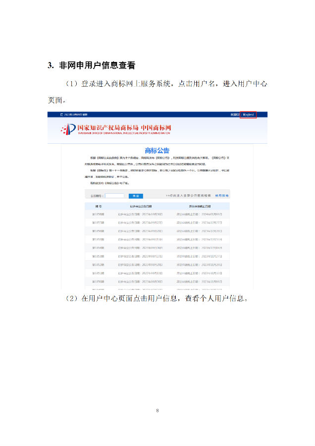 自2023年10月22日起,商标网上服务系统的商标公告、商标注册证明公示、商标公开文书、商标网上查询等栏目将陆续开放用户注册功能,登录后方可使用。具体操作详见用户操作手册。