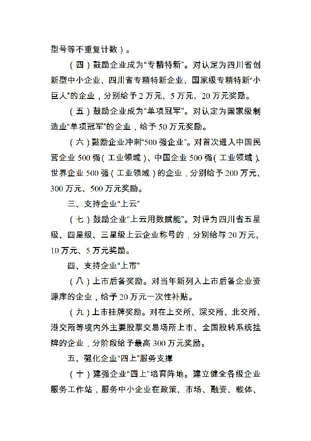 关于支持企业“四上”高质量发展的若干政策(征求意见稿)
