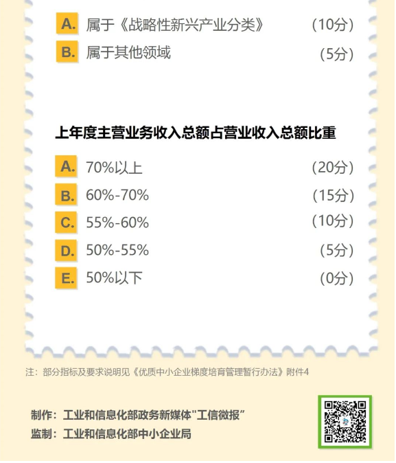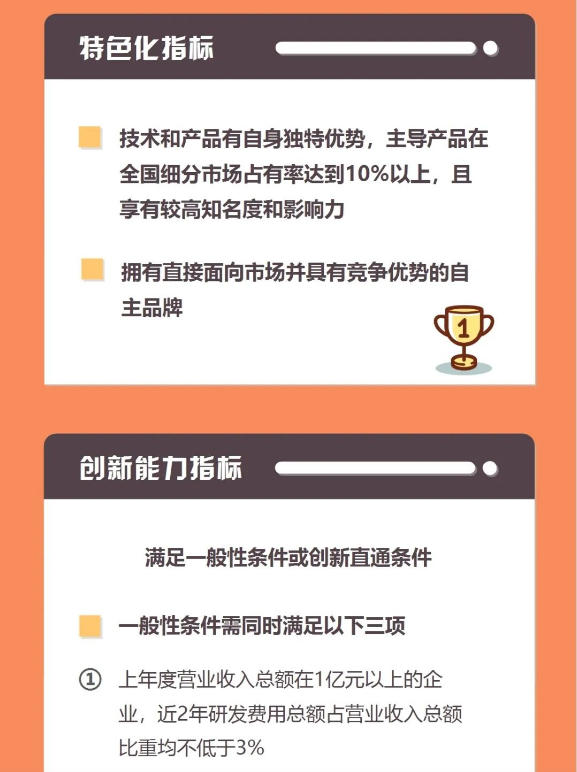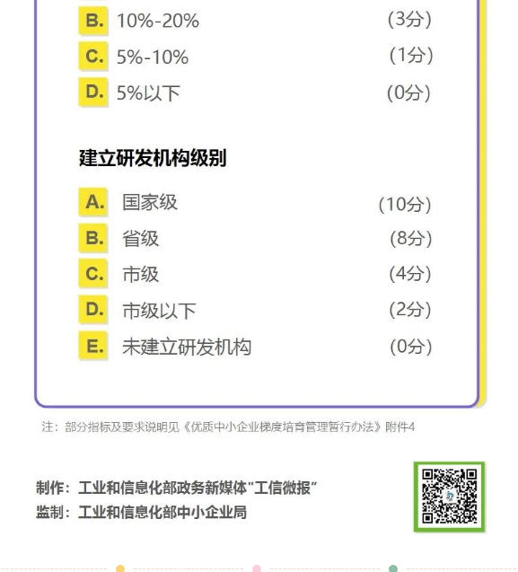 为进一步加强优质中小企业梯度培育工作,推动中小企业高质量发展,工业和信息化部印发《优质中小企业梯度培育管理暂行办法》,明确了创新型中小企业、专精特新中小企业、专精特新“小巨人”企业的评价或认定标准。