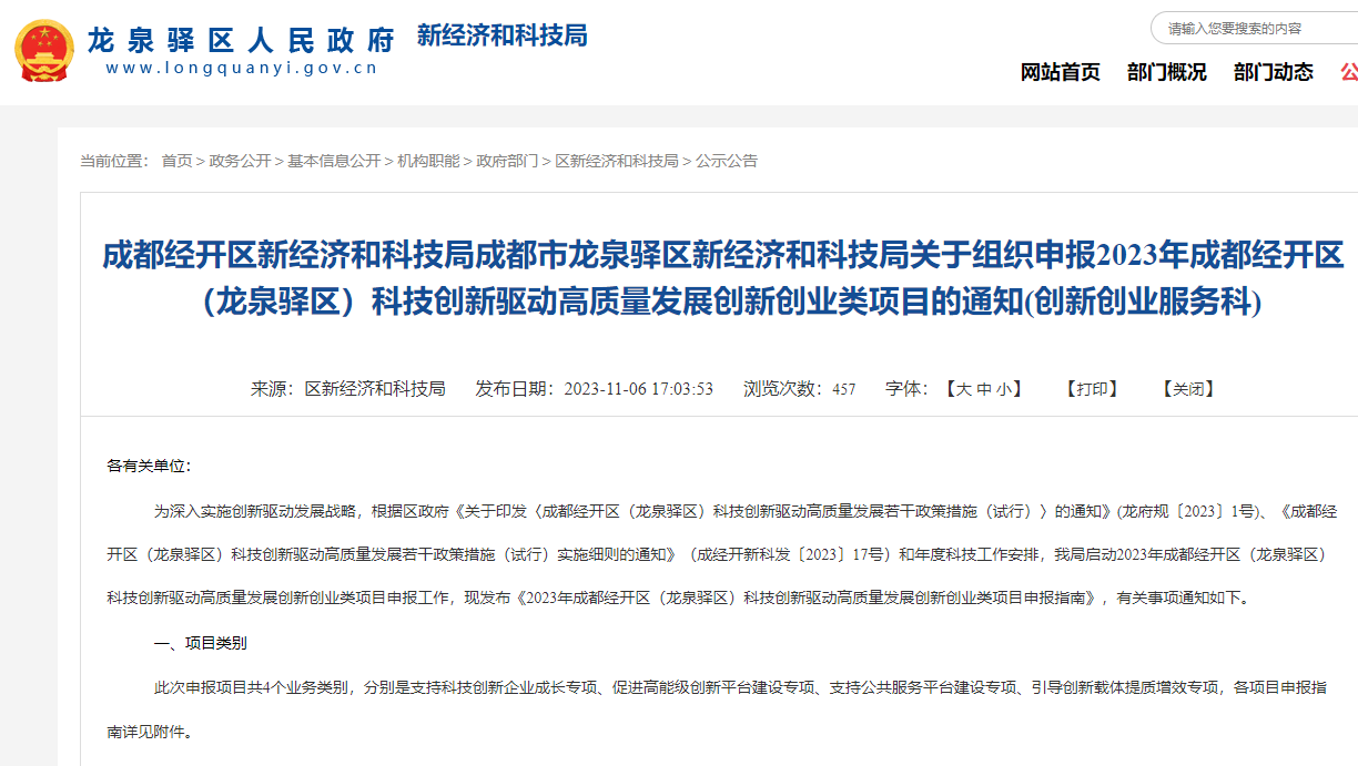 附件:关于组织申报2023年成都经开区(龙泉驿区)科技创新驱动高质量发展创新创业类项目的通知 成都经开区新经济和科技局