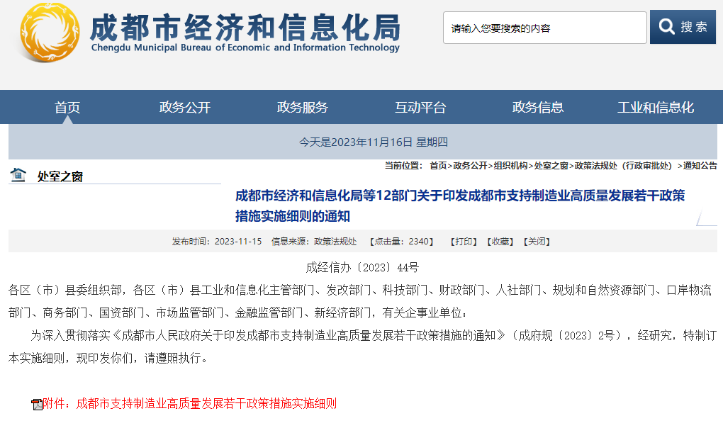 成都市经济和信息化局等12部门关于印发成都市支持制造业高质量发展若干政策措施实施细则的通知