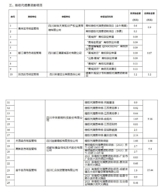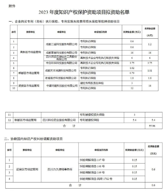 附件:2023年度成都市知识产权保护资助项目拟资助名单