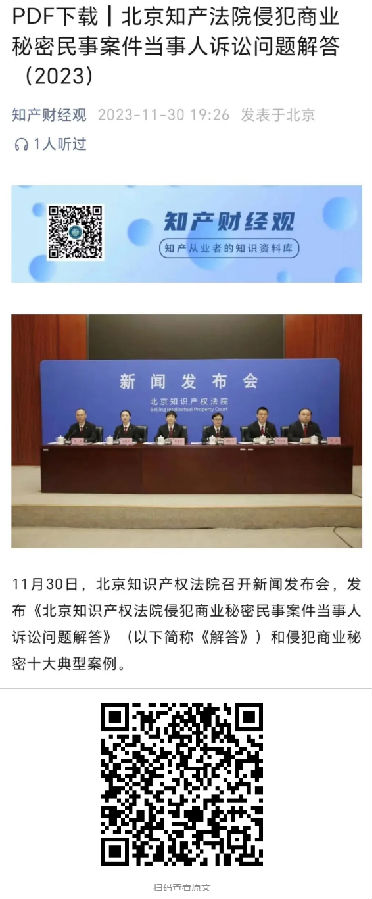 PDF下载┃北京知产法院侵犯商业秘密民事案件当事人诉讼问题解答(2023)