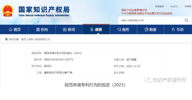 2023年12月21日,国家知识产权局公布《规范申请专利行为的规定》自2024年1月20日起施行。