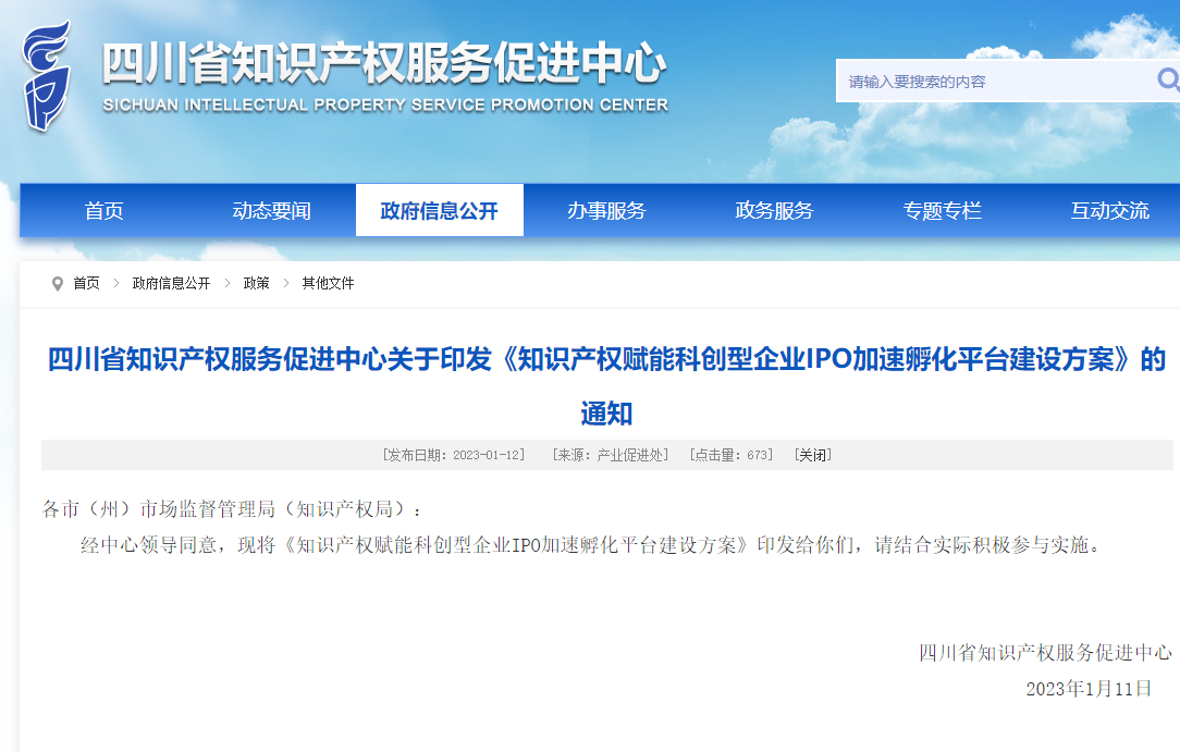 四川省知识产权服务促进中心关于印发《知识产权赋能科创型企业IPO加速孵化平台建设方案》的通知