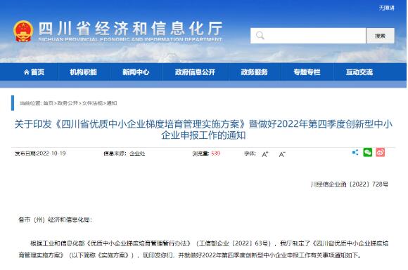 关于印发《四川省优质中小企业梯度培育管理实施方案》暨做好2022年第四季度创新型中小企业申报工作的通知