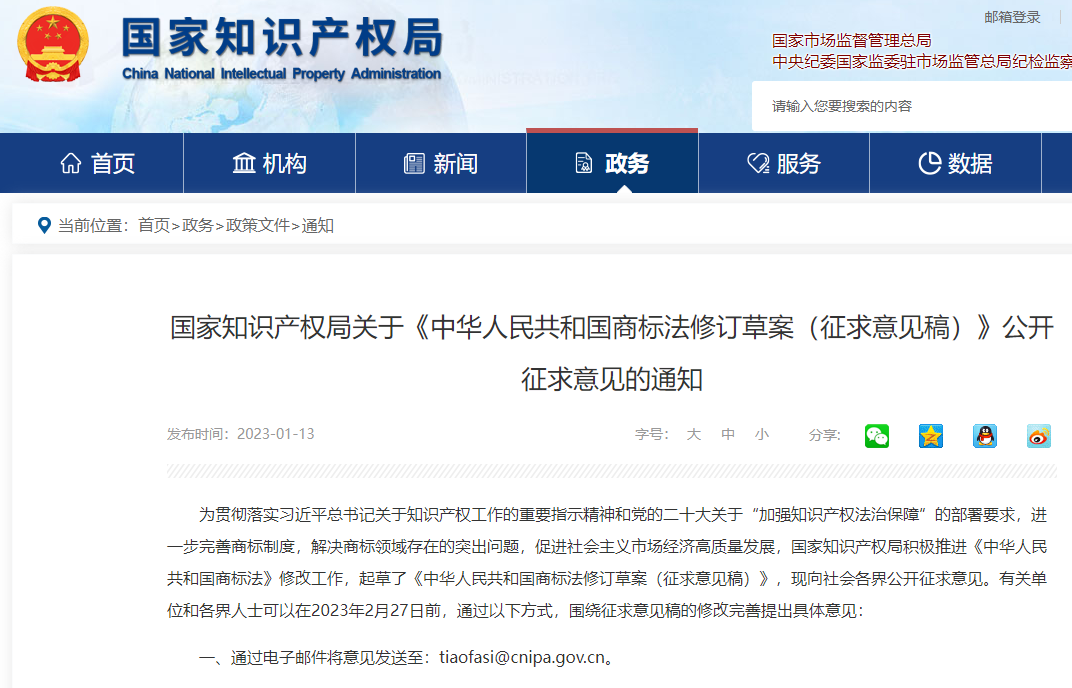 《中华人民共和国商标法修订草案(征求意见稿)》公开征求意见