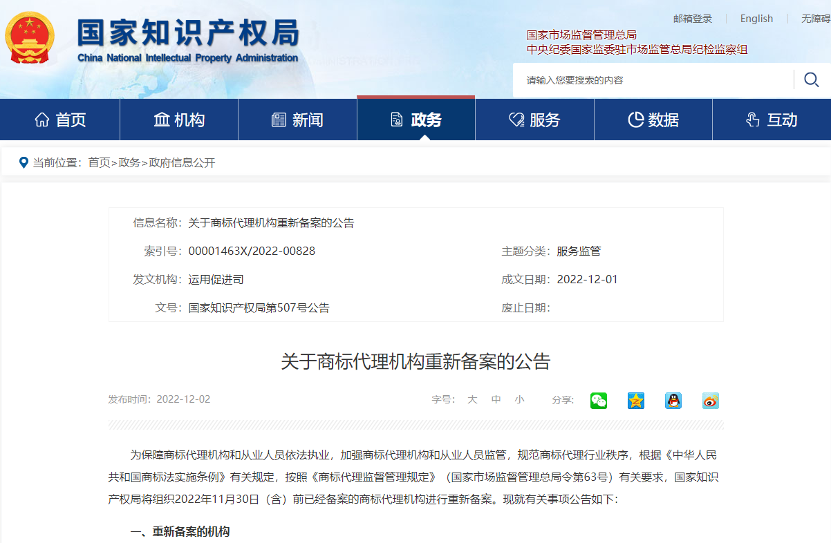 关于商标代理机构重新备案的公告
