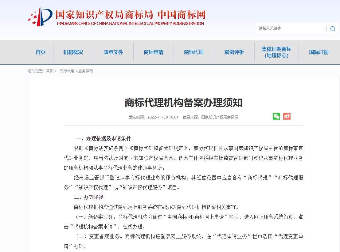 商标代理机构备案办理须知