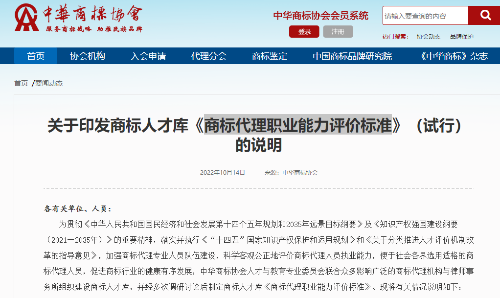 商标人才库《商标代理职业能力评价标准》(试行)发布