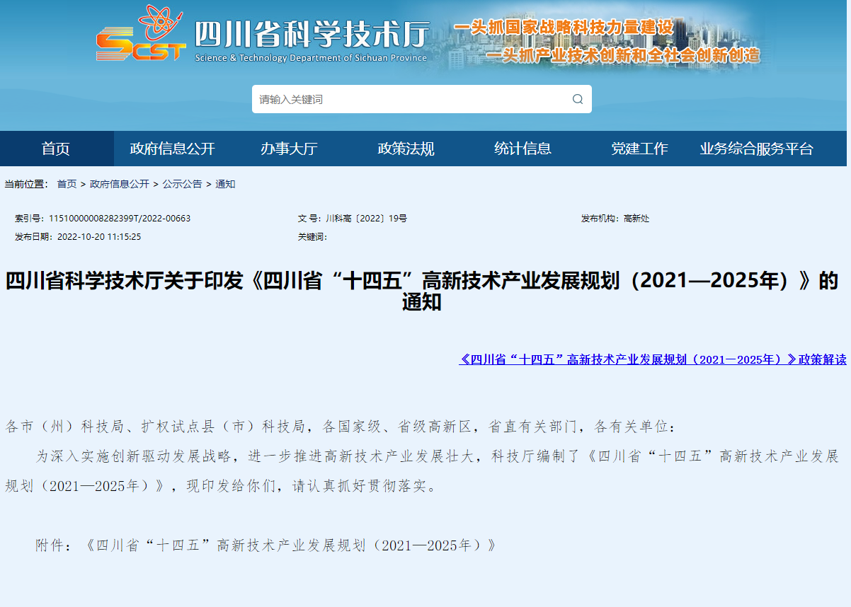 四川省科学技术厅关于印发《四川省“十四五”高新技术产业发展规划(2021—2025年)》的通知