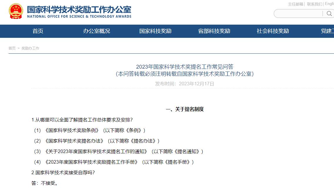 2023年国家科学技术奖提名工作常见问答