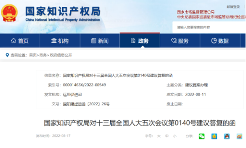 来源:国家知识产权局(版权归原作者所有,本文仅供交流学习,部分文章推时未能及时与原作者取得联系,若来源标注错误或侵犯到您的权益,烦请告知,我们将立即删除)封面图片来自网络近日,国家知识产权局发布对十三届全国人大五次会议第0140号建议答复的函。国知局答复《关于加强知识产权利用转化能力的建议》提到围绕资本化促进知识产权......