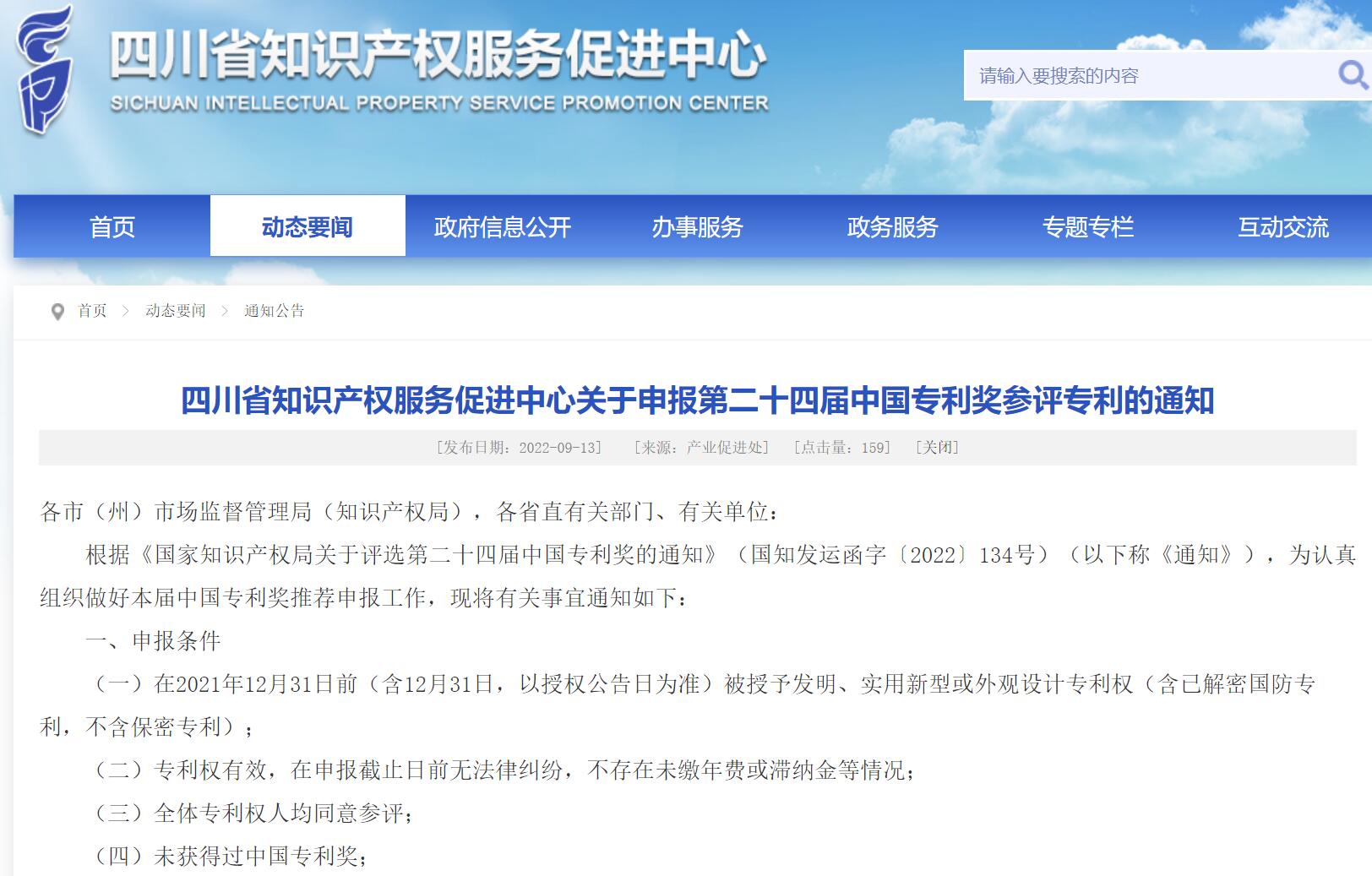 四川省知识产权服务促进中心关于申报第二十四届中国专利奖参评专利的通知