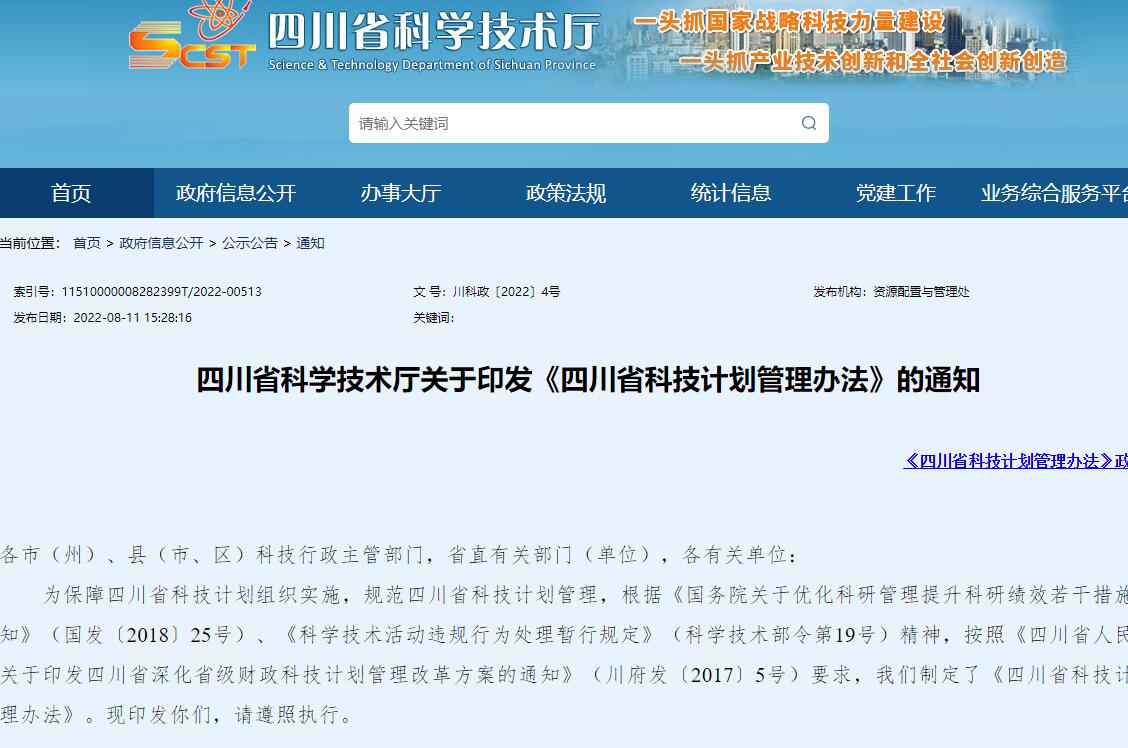四川省科学技术厅关于印发《四川省科技计划管理办法》的通知...