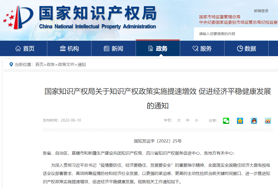 国家知识产权局关于知识产权政策实施提速增效 促进经济平稳健康发展的通知