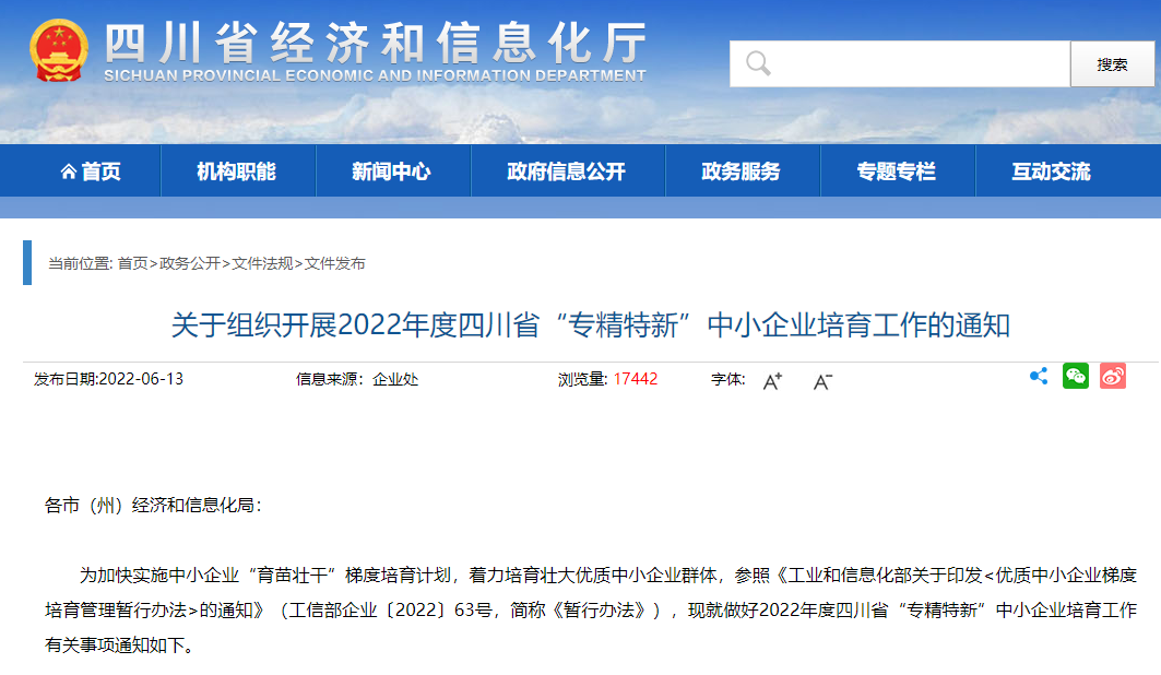 关于组织开展2022年度四川省“专精特新”中小企业培育工作的通知