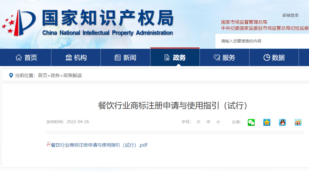 国知局发布餐饮行业商标注册申请与使用指引(试行)