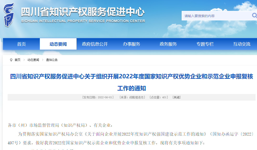 四川省知识产权服务促进中心关于组织开展2022年度国家知识产权优势企业和示范企业申报复核工作的通知