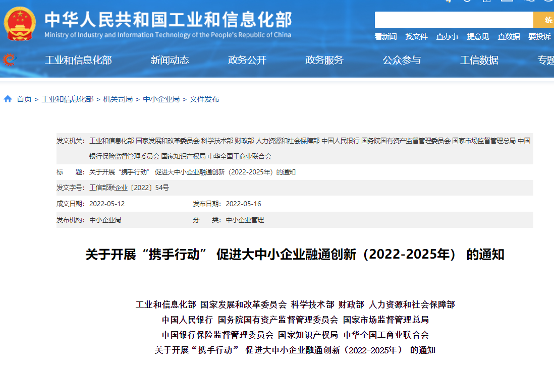 工信部等11部门部署开展“携手行动” 促进大中小企业融通创新