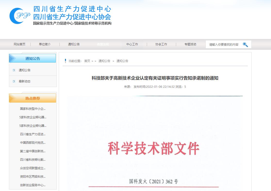科技部关于高新技术企业认定有关证明事项实行告知承诺制的通知