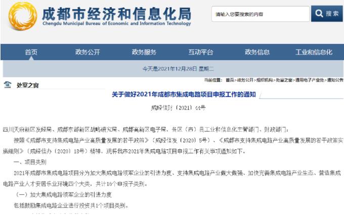 来源:成都市经济和信息化局(版权归原作者所有,本文仅供交流学习,部分文章推时未能及时与原作者取得联系,若来源标注错误或侵犯到您的权益,烦请告知,我们将立即删除)封面图片来自网络关于做好2021年成都市集成电路项目申报工作的通知成经信财〔2021〕44号...