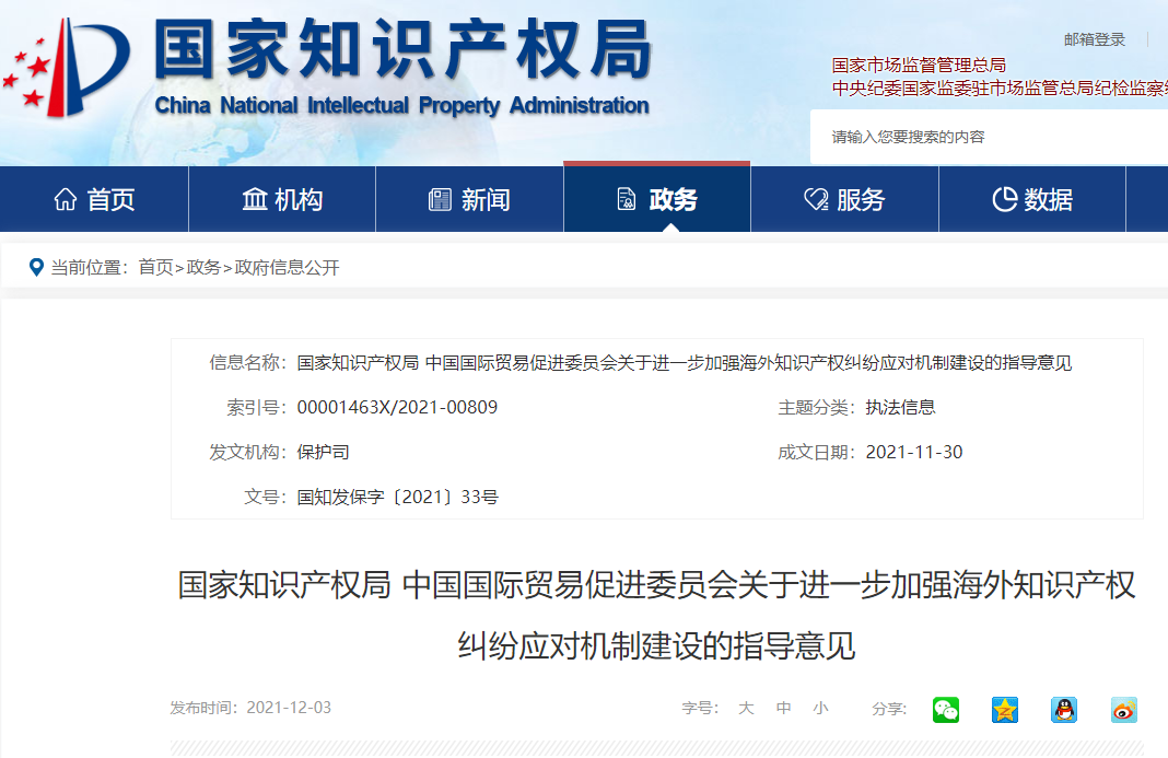国知局、贸促会印发:进一步加强海外知识产权纠纷应对机制建设的指导意见