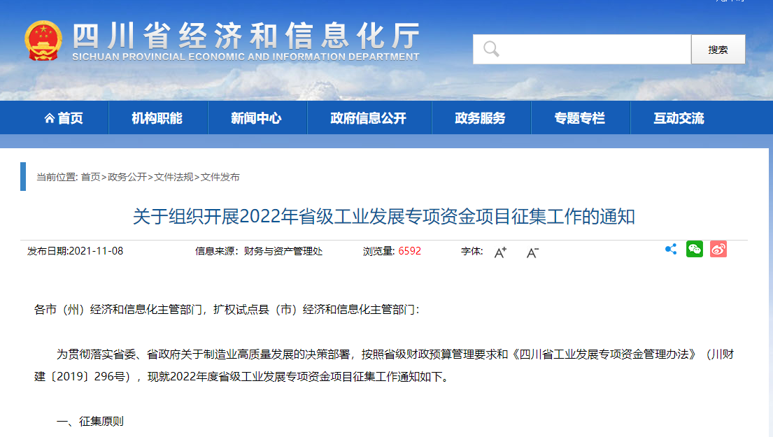 来源:四川省经济和信息化厅(版权归原作者所有,本文仅供交流学习,部分文章推时未能及时与原作者取得联系,若来源标注错误或侵犯到您的权益,烦请告知,我们将立即删除)封面图片来自网络关于组织开展2022年省级工业发展专项资金项目征集工作的通知各市(州)经济和信息化主管部门,扩权试点县(市)经济和信息化主管部门:为贯彻落实省委......
