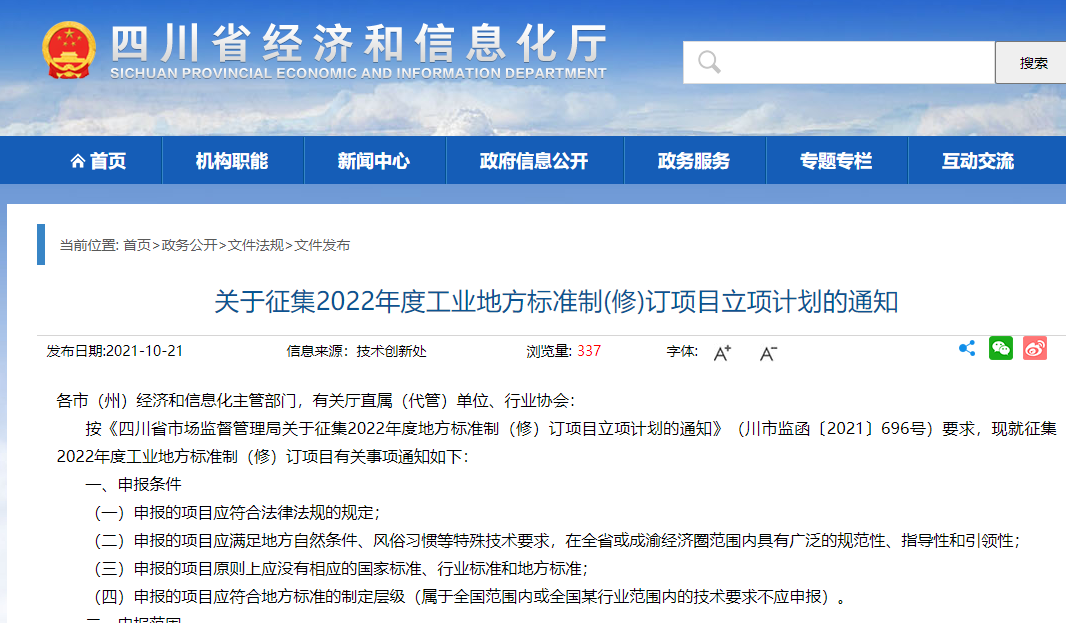 关于征集2022年度工业地方标准制(修)订项目立项计划的通知