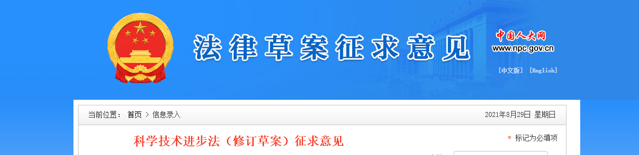 来源:人大网(版权归原作者所有,本文仅供交流学习,部分文章推时未能及时与原作者取得联系,若来源标注错误或侵犯到您的权益,烦请告知,我们将立即删除)封面图片来自网络第十三届全国人大常委会第三十次会议对《中华人民共和国科学技术进步法(修订草案)》进行了审议。现将《中华人民共和国科学技术进步法(修订草案)》在中国人大网公布,......