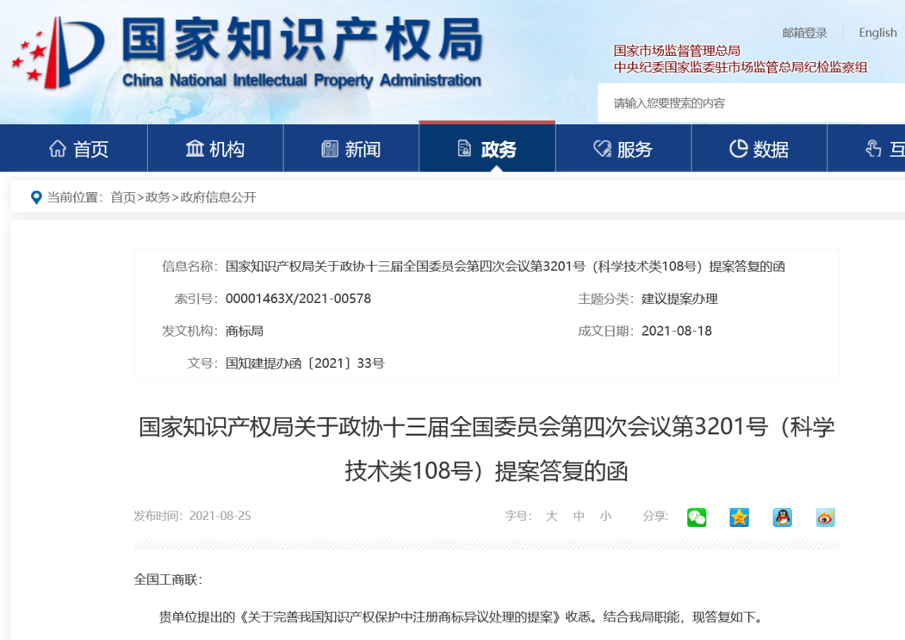 来源:国家知识产权局(版权归原作者所有,本文仅供交流学习,部分文章推时未能及时与原作者取得联系,若来源标注错误或侵犯到您的权益,烦请告知,我们将立即删除)封面图片来自网络近日,国家知识产权局发布关于政协十三届全国委员会第四次会议第3201号(科学技术类108号)提案答复的函。其中提到,国知局赞同提案中针对恶意异议等问题......
