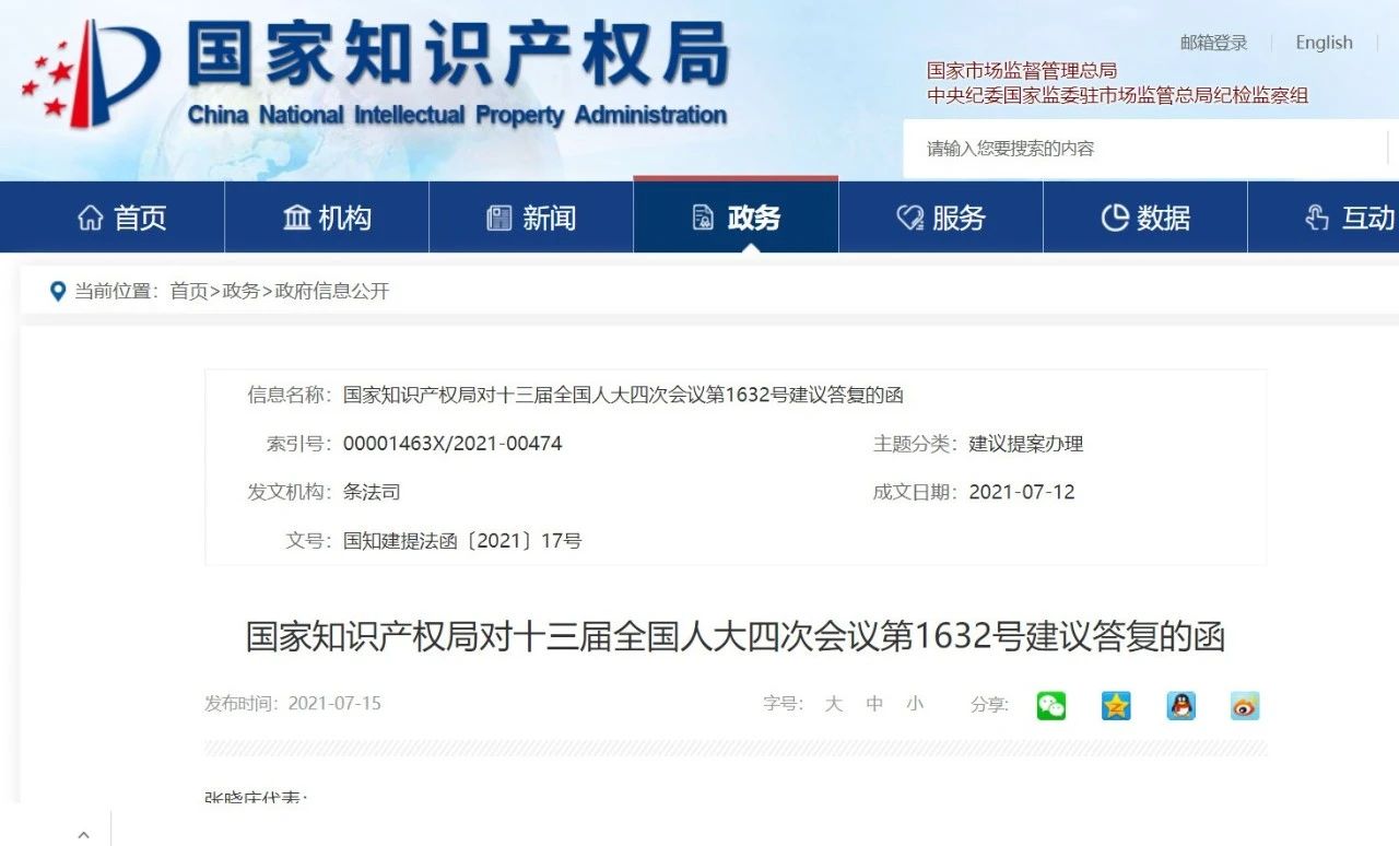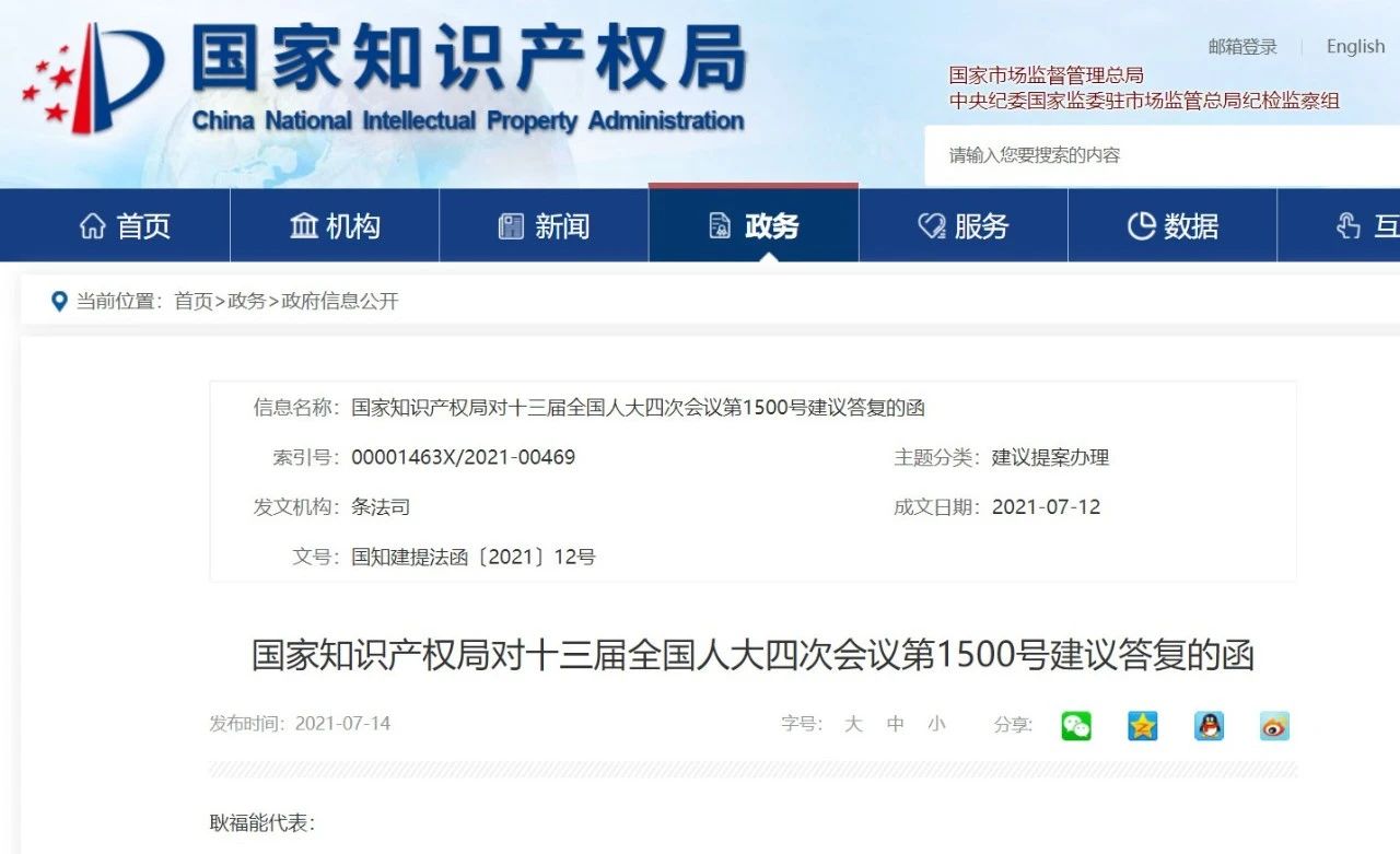 国知局回复制定统一的知识产权法,现已形成初步成果!